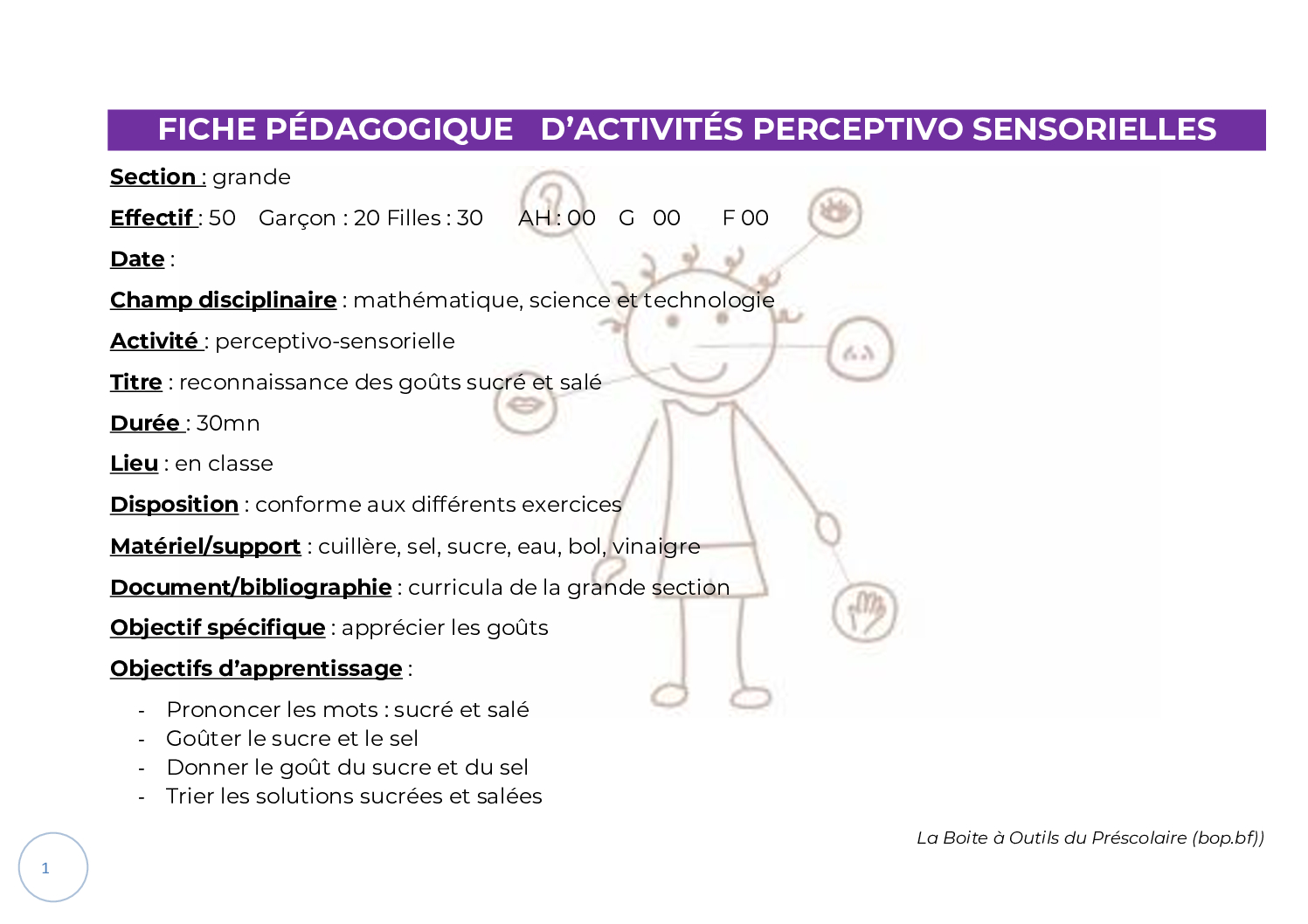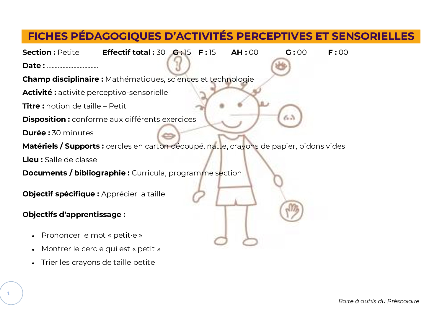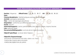 N.B. : Les fiches activités ne sont pas des fiches pédagogiques élaborées selon l’ossature consacrée ou encore moins des préparations entières préconçues d’une notion, mais, elles sont conçues avec des éléments qui serviront à alimenter une fiche pédagogique.